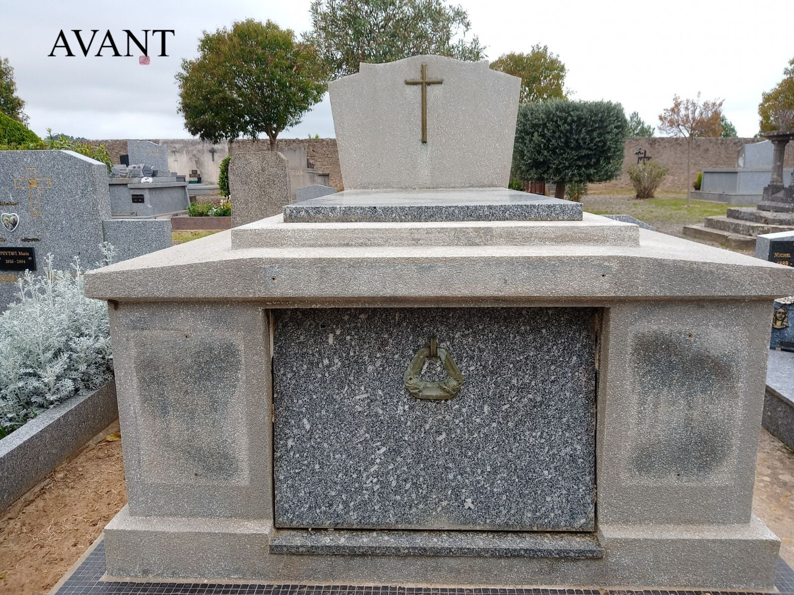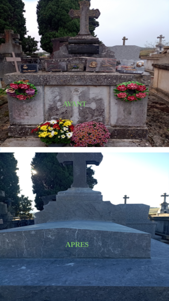 Nettoyage simple, efficace et réfection des joints pour redonner un aspect propre et soigné au caveau. Fleurissement selon vos envies.